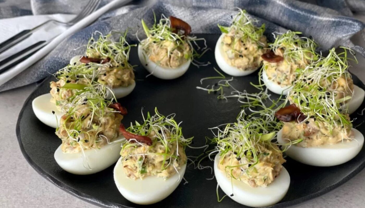 Šie įdaryti kiaušiniai – tai klasikos ir gurmaniškų skonių derinys, kuris nustebins net ir išrankiausius. Sultinga silkės filė ir aromatingi kepti pievagrybiai sukuria nepaprastai gardų įdarą, tobulai derantį su švelniais kiaušinių baltymais. Tai puikus pasirinkimas ne tik šventiniam Velykų stalui, bet ir elegantiškas užkandis bet kokiam vakarėliui ar susibūrimui. Paruoškite juos iš anksto ir mėgaukitės laiku su artimaisiais!