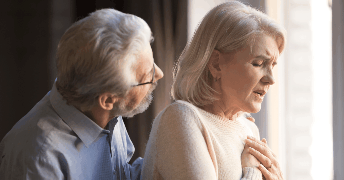 • Krūtinės skausmas lydimas dusulio, pykinimo, galvos svaigimo, prakaitavimo ar padažnėjusio širdies plakimo.