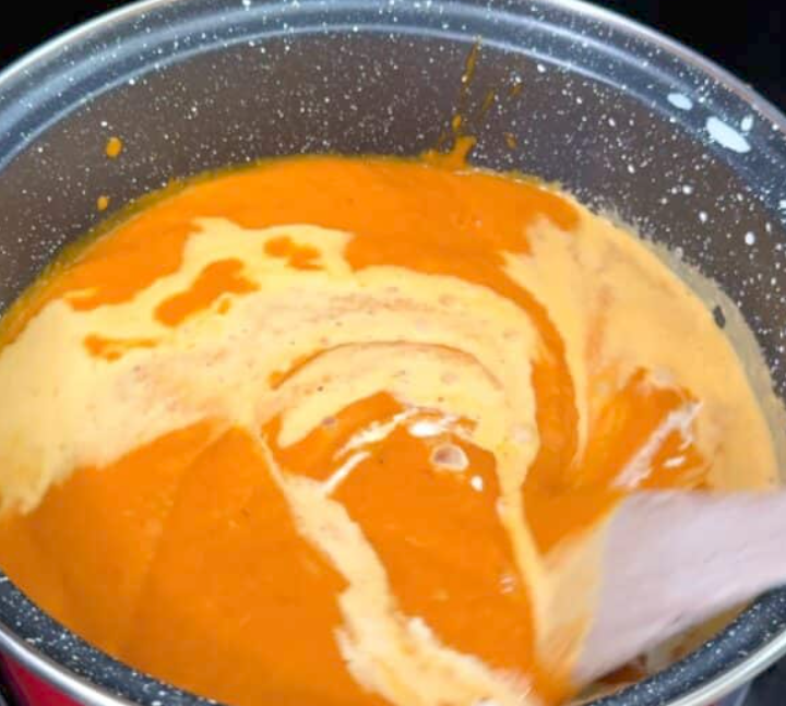 - Virimas: supilkite masę į puodą ir kaitinkite ant vidutinės ugnies. Įmaišykite kokosų pieną ir pavirkite apie 2 minutes, kol viskas sušils.