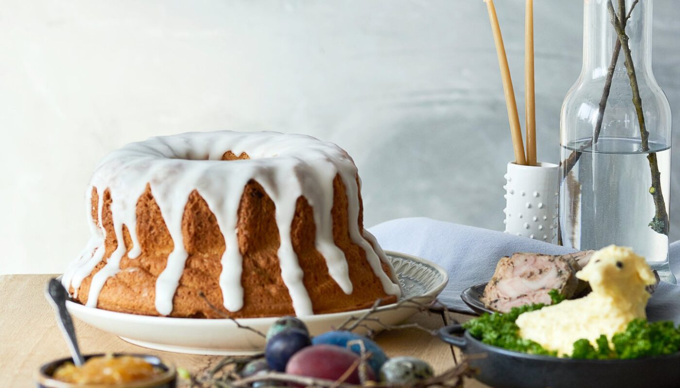 - **Dekoravimas:** Atvėsusią Velykų bobą apipilkite paruoštu glaistu. Norint, kad pyrago viršus būtų baltesnis ir sodresnis, glaistą galite tepti keliais sluoksniais, leisdami kiekvienam išdžiūti.