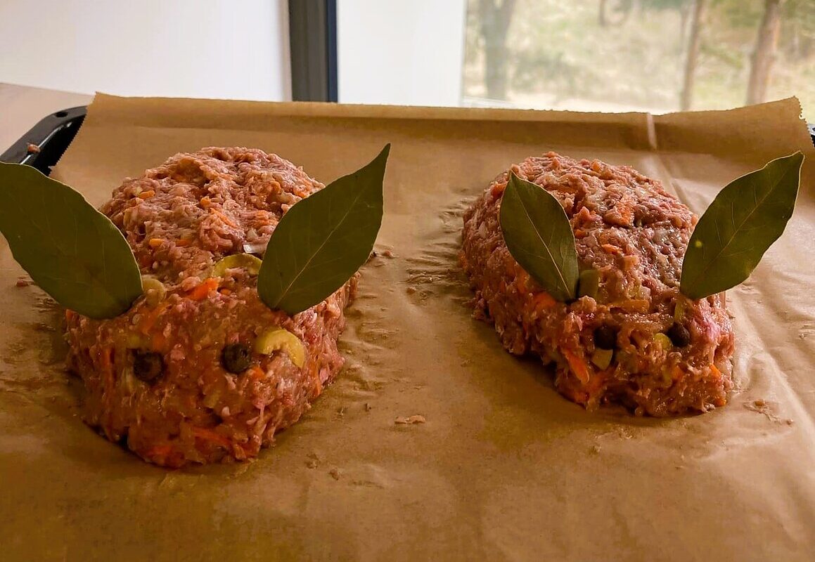 - Įmuškite kiaušinį, sudėkite smulkintą svogūną, susmulkintą česnaką, tarkuotą morką ir supjaustytas alyvuoges.